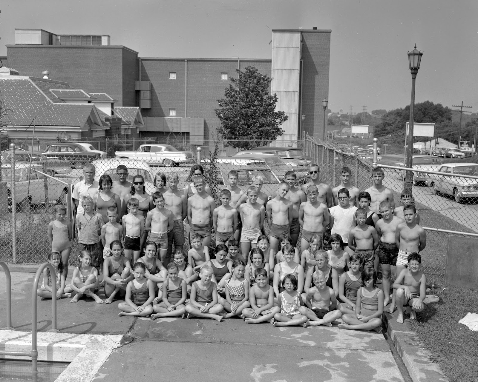 The Lancaster County Swim Team poses for a group portrait at the Springs Cotton Mill in June of 1965. The pool was located in the front of the mill near the main office.